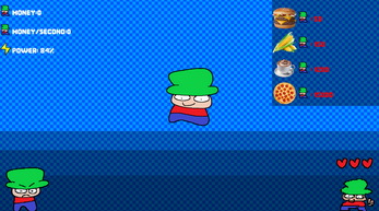 Alfredo ordered pizza and soda, but he has no way to pay for it! So you need to help him earn money before the delivery driver arrives in 10 minutes. But there will be people trying to stop you! The game is very buggy.